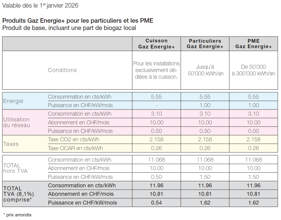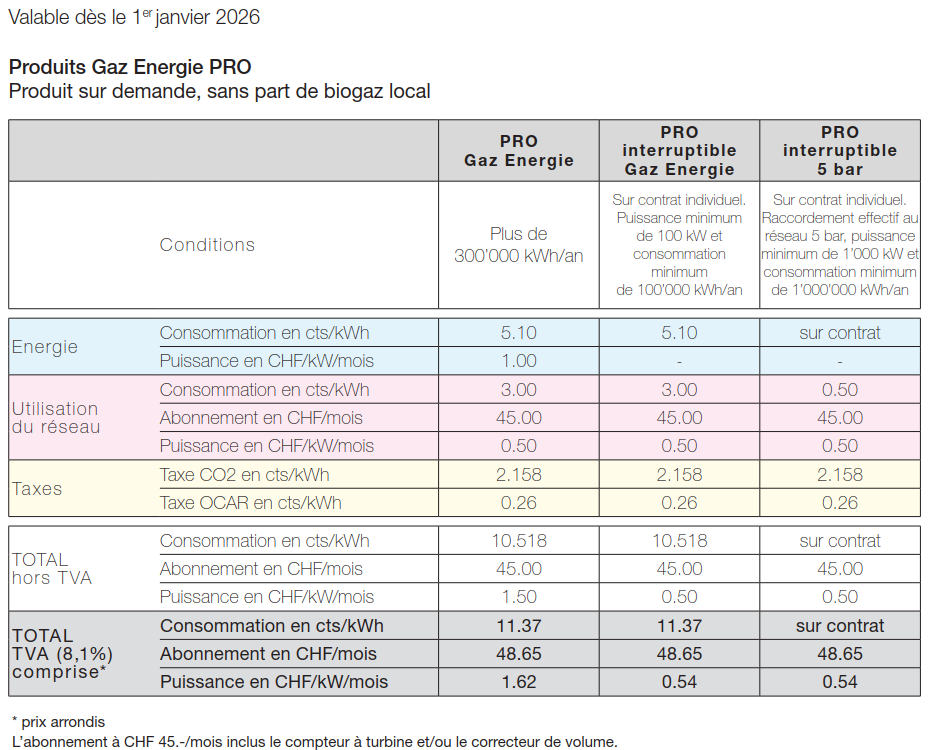 Le site du Surveillant des prix relatif aux prix du gaz naturel permet de comparer les prix en cts/kWh en Suisse, selon les différents profils standards des clients.