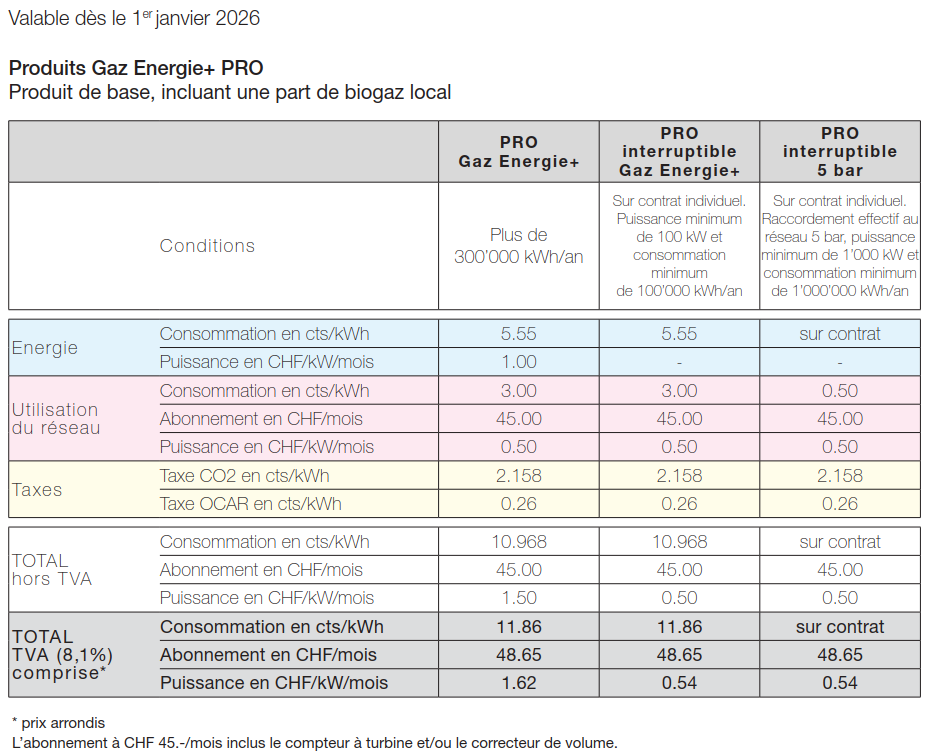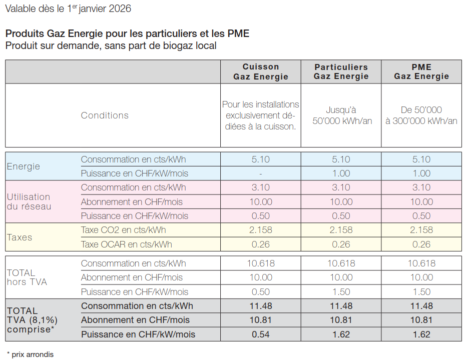 Le site du Surveillant des prix relatif aux prix du gaz naturel permet de comparer les prix en cts/kWh en Suisse, selon les différents profils standards des clients.