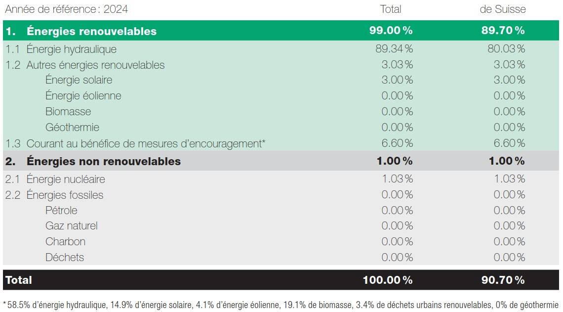 Le marquage de l’électricité vous donne des informations détaillées sur l'énergie que nous vous fournissons. Chaque année, nous publions la composition de l’énergie électrique que nous proposons à nos clients, notamment la part de courant suisse et le type de production.
