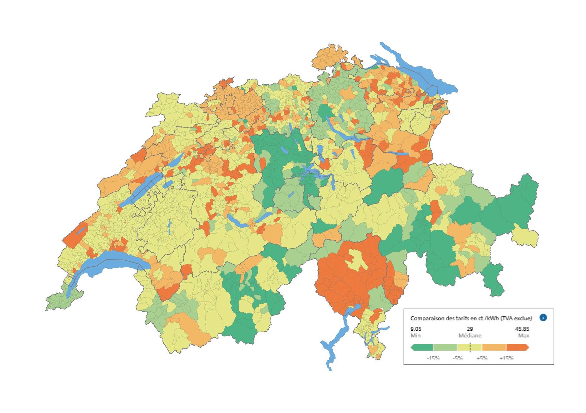 Les tarifs d’électricité des cantons, des communes et des gestionnaires de réseau peuvent être consultés et comparés sur le site Internet de l’ElCom: www.prix-electricite.elcom.admin.ch.